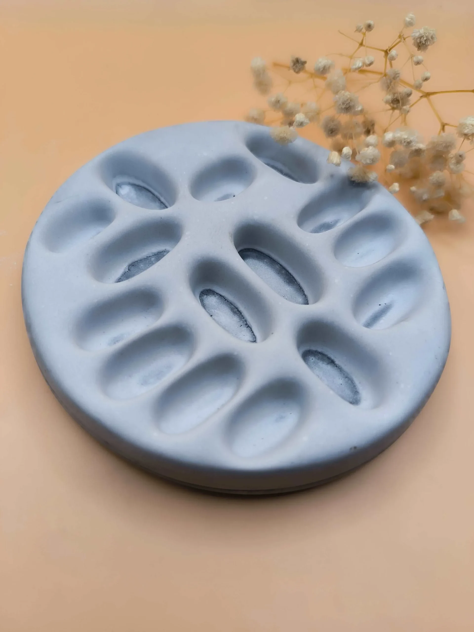 Organiza tus anillos con estilo y sostenibilidad con nuestra bandeja redonda hecha a mano. Fabricada con resina acrílica ecológica, esta bandeja es perfecta para quienes buscan funcionalidad y elegancia en su decoración. Su diseño minimalista y suave la convierte en el accesorio ideal para mesas de noche, tocadores o escritorios.