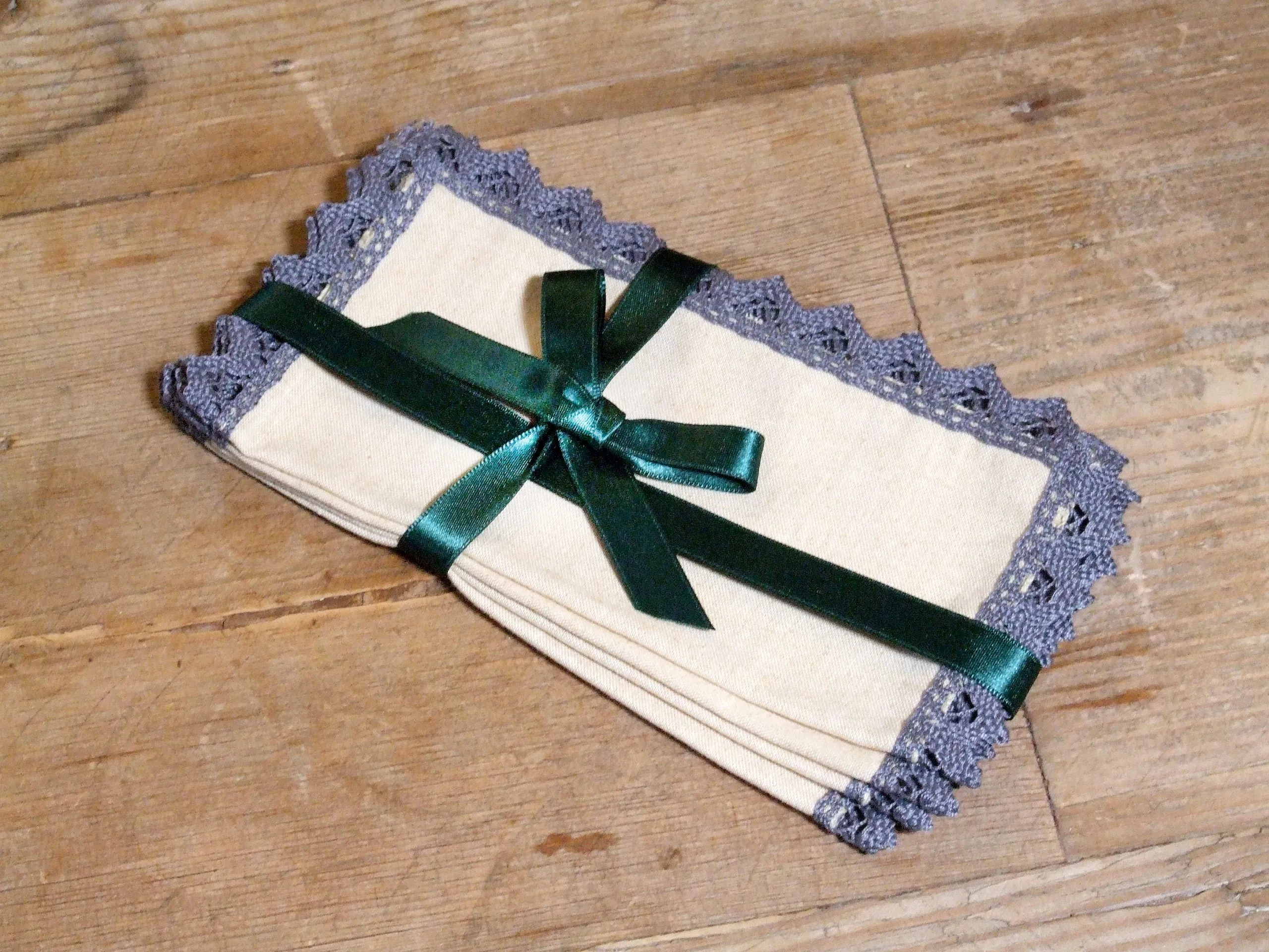 Están elaboradas en lino 100% y rematadas con una blonda de bolillo de algodón.