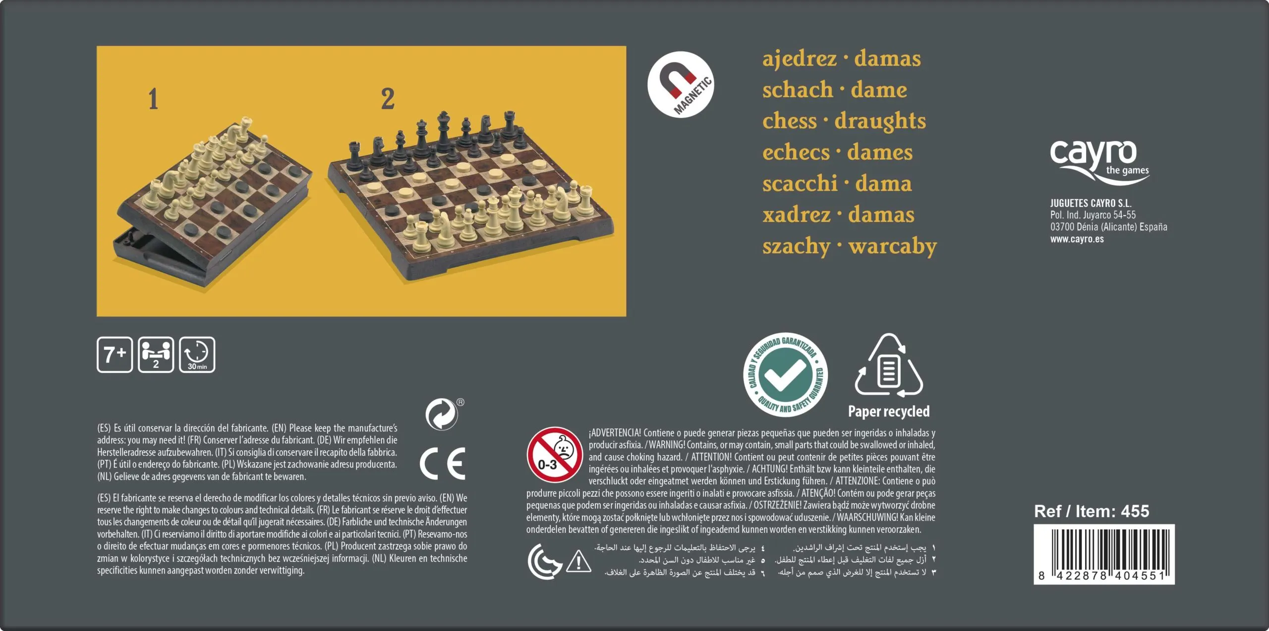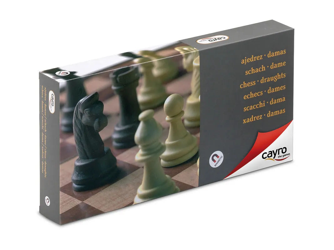 Este juego de ajedrez y damas, por su tamaño es muy recomendable para los apasionados de ese juego de estrategia. Jugarás cómodamente y además al ser magnético, las fichas no se moverán.