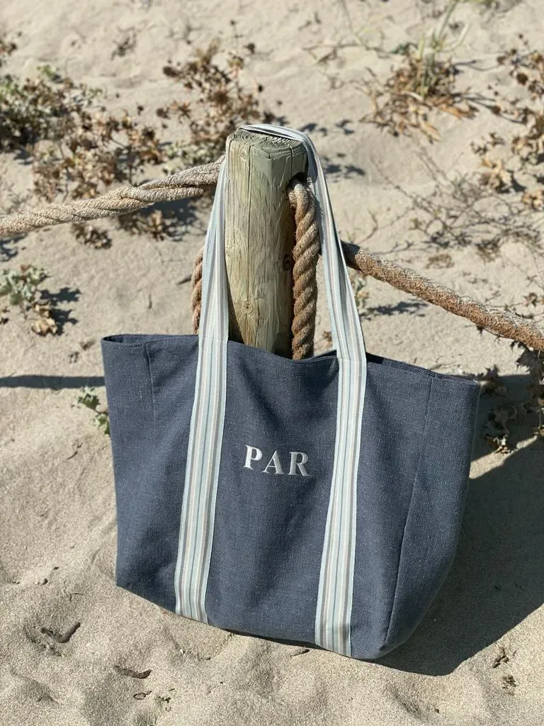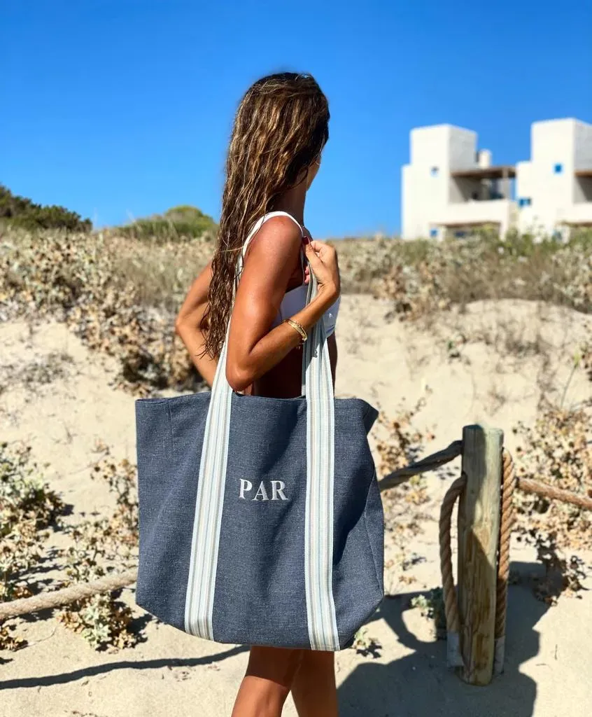 Sé el primero en valorar “Bolsa de playa azul con raya azul y gris”