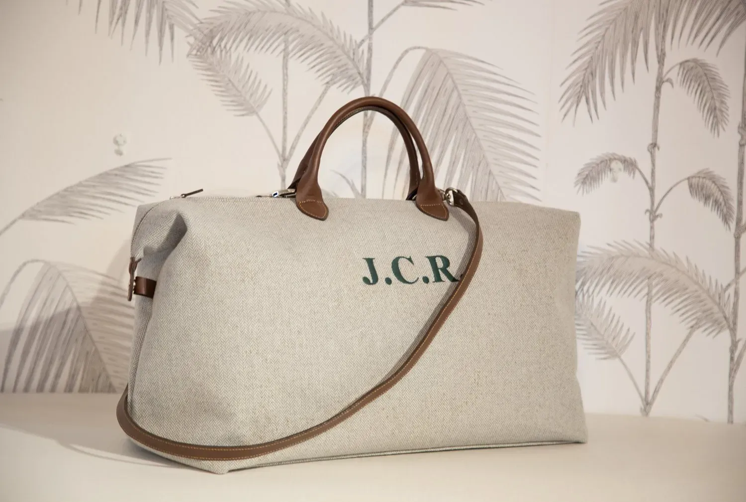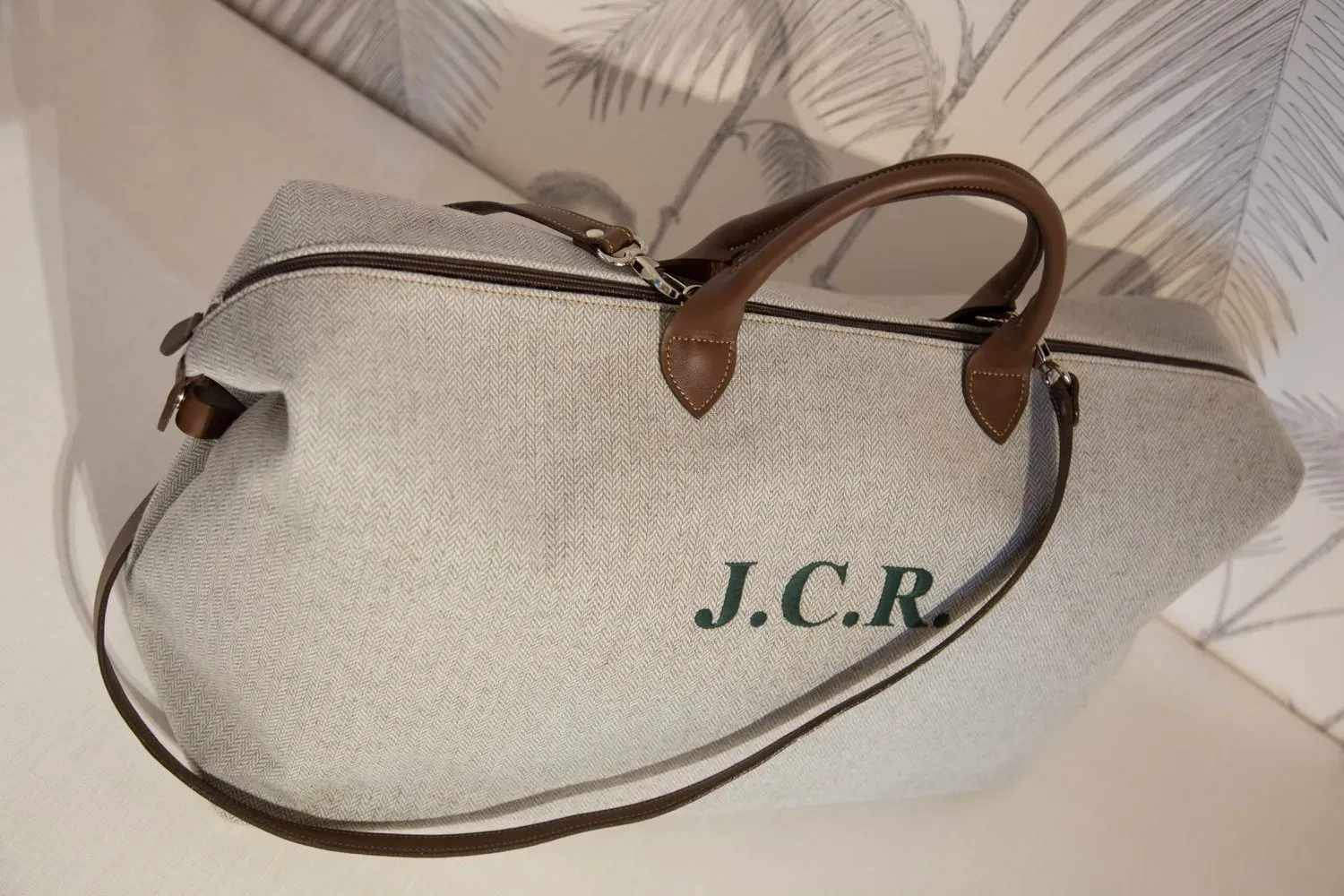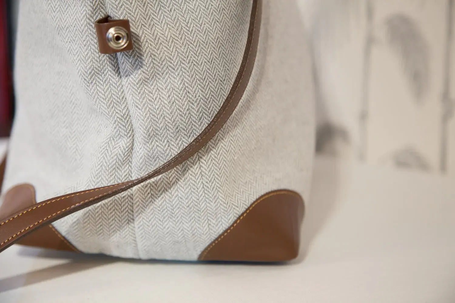 Bolsa rematada en piel y forrada de piel porcina.