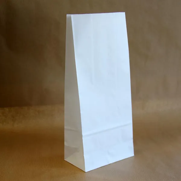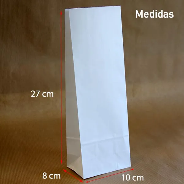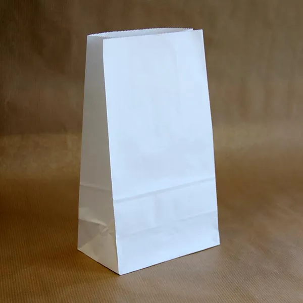 Bolsa en papel celulosa blanco de gran calidad sin asa y base cuadrada. Especialmente recomendada para el sector alimentario. Disponible en 9 tamaños: