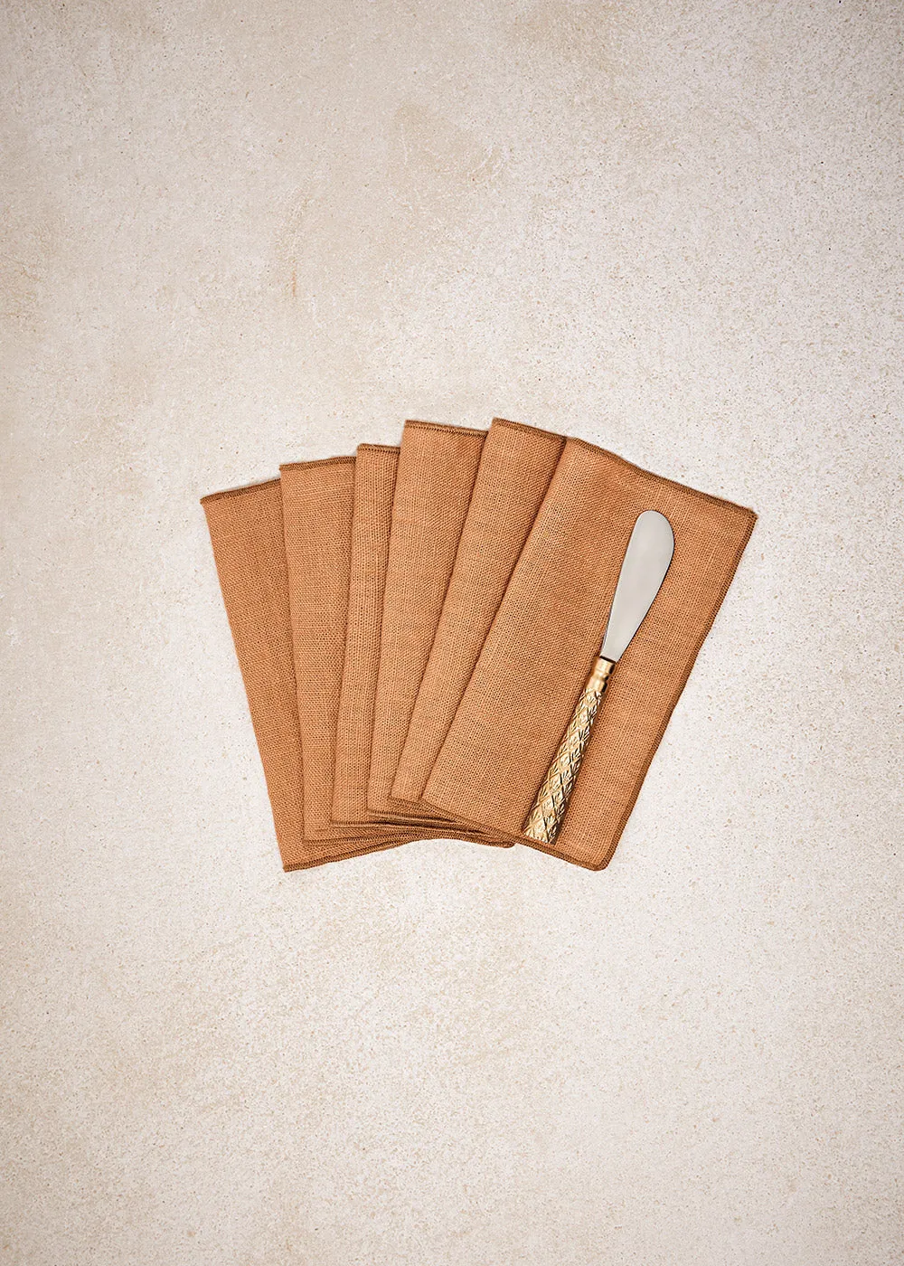 Pack de 6 servilletas de aperitivo con borde al mismo tono de 100% lino. Destacan por sus tonalidades y tejidos, ideales para combinar con nuestros individuales y servilletas. ¡Pon color a tu mesa con nuestros linos!