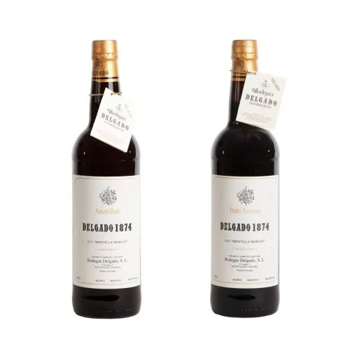 Pack de 2 vinos de ‘Sacristía’ Delgado 1874. 1 botella de Amontillado Natural Muy Viejo Delgado 1874 y 1 botella de Pedro Ximénez Delgado 1874.