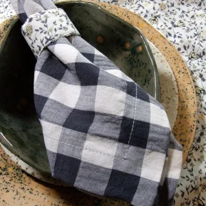 Servilleta en lino crudo muy clara terminada en color rojo.