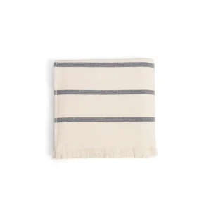 Toalla reversible efecto lino – raya estrecha azul